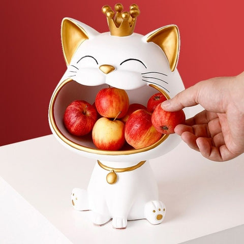 Une décoration d'intérieur avec beaucoup de charme grâce à cette sculpture fabriquée en résine naturelle. Elle représente un petit chat très joyeux ouvrant grand sa gueule, ce qui vous permet d'y ajouter des objets à l'intérieur. Sa couleur blanche se mariera parfaitement dans votre pièce et l'or vous offrira un aspect très luxueux. Posez ce modèle sur votre table de cuisine, ou dans votre entrée pour une déco réussie !
