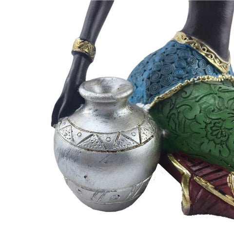 Apportez une touche Africaine dans votre décoration d'intérieur avec cette superbe sculpture. Elle est fabriquée en résine naturelle et représente une jeune femme assise. Elle porte une tenue colorée à l'image de la culture africaine et qui donnera un regain d'énergie chez vous. Cet objet décoratif sera parfait sur une table de salon ou dans votre entrée par exemple.