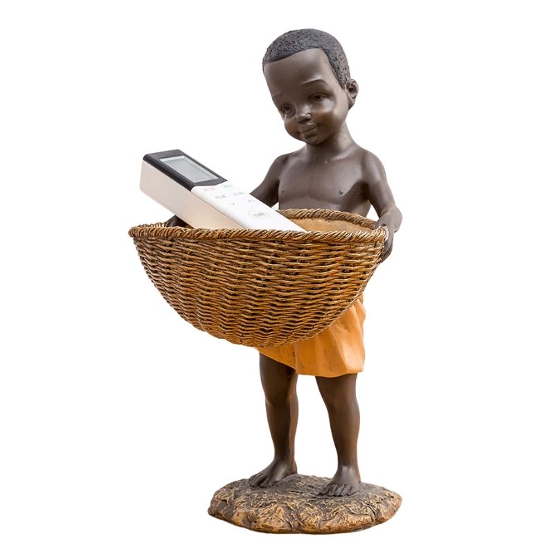 Laissez-vous tenter par cette superbe sculpture fabriquée en résine naturelle. Elle représente un petit garçon portant un panier, ce qui vous permet d'ajouter de petits objets à l'intérieur. Ce modèle aux finitions soignées donnera beaucoup de charme dans votre décoration d'intérieur. Elle sera parfaite sur une table de salon ou sur un meuble d'entrée par exemple.