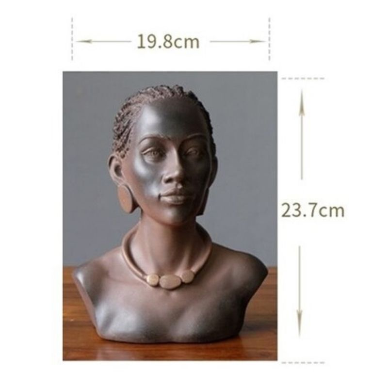 Superbe sculpture fabriquée en résine naturelle pour accessoiriser votre décoration d'intérieur. Ce modèle représente une Femme Africaine. Sa couleur marron se mariera très bien dans un intérieur. Elle sera parfaite posée sur un bureau, dans une entrée ou sur le meuble de votre salon par exemple.