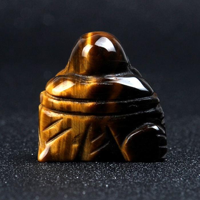 Ce petit Bouddha Rieur en Pierre précieuse de 40 grammes est fabriqué en obsidienne noire et donnera beaucoup de cachet dans votre décoration d'intérieur. Ce petit Bouddha est assis en position du Lotus et apportera beaucoup de zénitude chez vous. Sa couleur marron brillante se mariera très bien dans votre habitat.