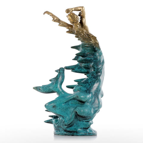 Idéale pour apporter de la couleur et de l'originalité à votre décoration d'intérieur, cette sculpture est faite pour vous. Elle représente une sirène au style très épuré. Fabriqué par modélisation 3D en bronze, ce modèle de très haute qualité apportera beaucoup d'élégance dans votre habitat. Son mélange de couleur dorée et bleue donneront de l'énergie dans votre déco.