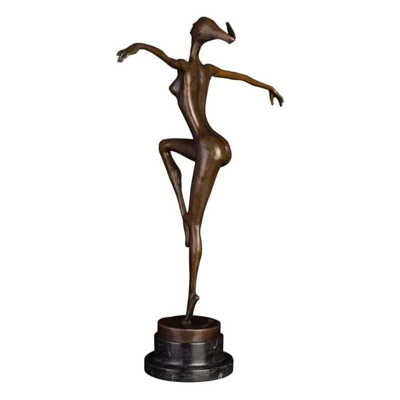 Cette superbe sculpture est fabriquée en bronze et en marbre et donnera beaucoup de charme dans votre décoration d'intérieur. Sa forme fine est très raffinée et représente une danseuse. Sa couleur bronze se mariera parfaitement dans votre décoration. Elle sera parfaite posée sur le meuble de votre salon, dans votre entrée ou dans votre chambre par exemple.