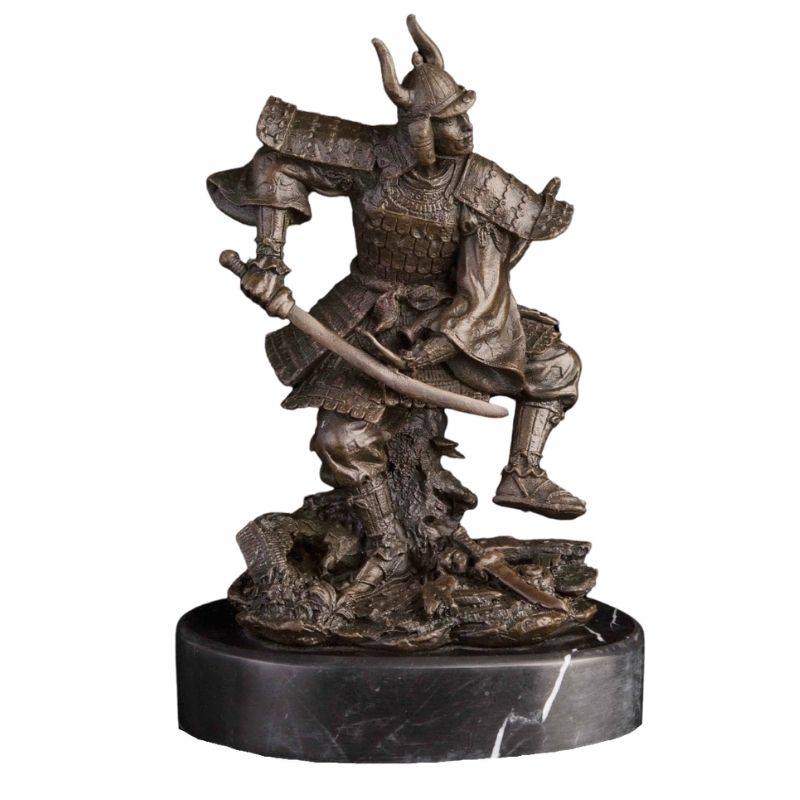 Apportez du cachet dans votre décoration d'intérieur grâce à cette superbe sculpture fabriquée à la main en bronze. Elle représente un samouraï, véritable guerrier ancestral du Japon. Sa forme apportera de l'énergie dans votre intérieur. Elle sera parfaite posée sur un bureau ou sur un meuble de votre salon par exemple.