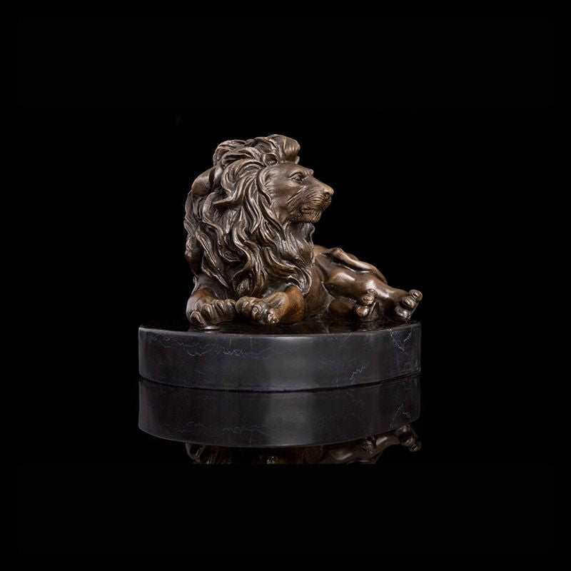 La puissance et l'élégance du roi de la savane au service de votre décoration d'intérieur. Et ce modèle représente bien la présence de l'animal. Cette sculpture est fabriquée en bronze véritable et représente un lion assis avec un regard très puissant. Sa couleur marron se mariera parfaitement dans toutes les pièces de votre maison et ne laissera pas vos convives indifférents !