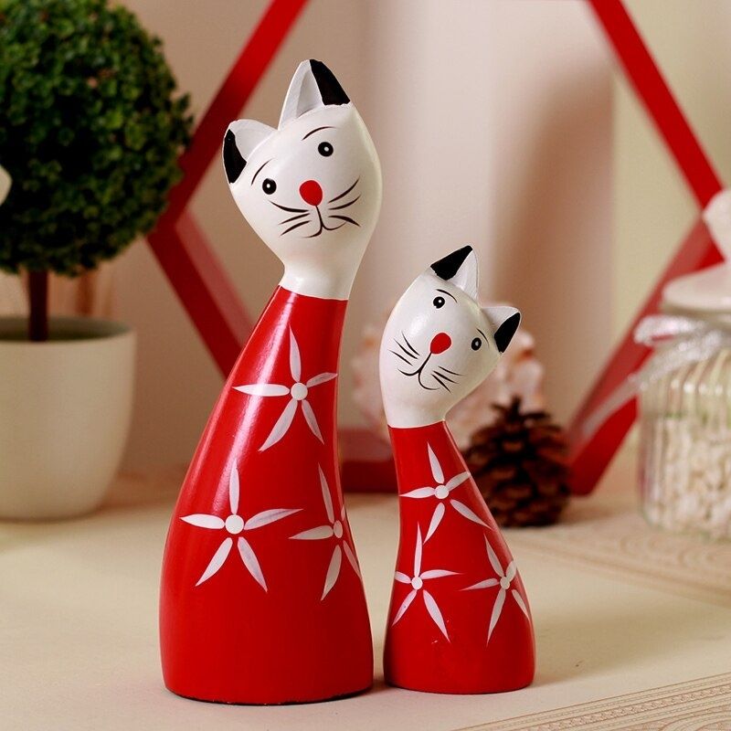 Laissez-vous tenter par ce duo de très belles sculptures fabriquées en bois véritable. Elles représentent des petits chats qui apporteront beaucoup de tendresse dans votre décoration d'intérieur. Leurs couleurs rouges et blanches ajouteront du peps dans votre pièce. Vous pouvez les poser sur une commode de chambre, un meuble d'entrée ou une table de salon par exemple. Elles sont vendues par deux.