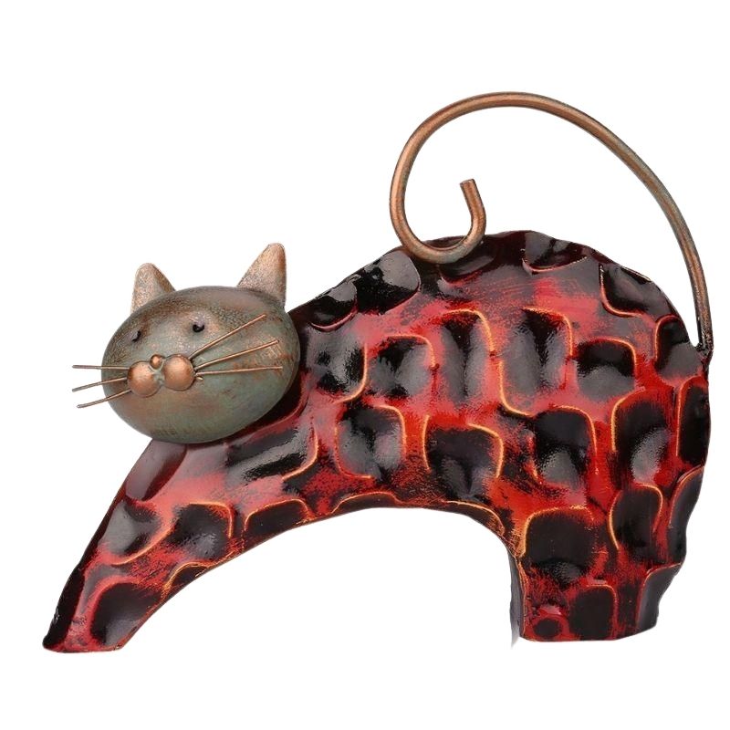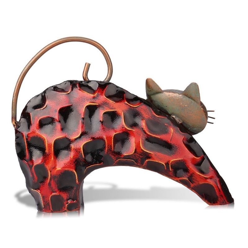 Très belle sculpture fabriquée en fer chromé pour dynamiser votre décoration d'intérieur à la perfection. Il représente un petit chat en train de s'étirer. Ses couleurs rouge et noire se marieront très bien dans votre pièce et apportera beaucoup de peps. Elle sera parfaite posée sur une table de salon ou sur le meuble de votre entrée par exemple.