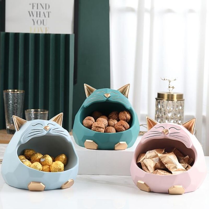 Accessoirisez votre intérieur selon vos goûts grâce à cette sculpture fabriquée en résine naturelle. Sa forme est très originale et représente la tête d'un chat avec la gueule ouverte. Ce qui vous permet d'y ajouter de petits objets comme vos clefs de maison ou des chocolats par exemple. Pour une déco réussie, posez ce modèle sur une table de salon ou dans votre cuisine par exemple. Sa couleur verte donnera de l'énergie dans votre intérieur.