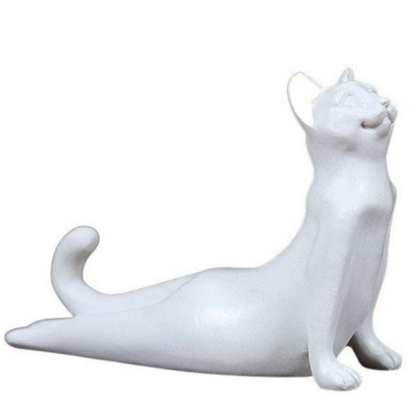 Cette superbe sculpture saura accessoiriser votre décoration d'intérieur à merveille. Elle est fabriquée en résine naturelle et représente un chat en train de s'étirer. Sa couleur blanche illuminera votre intérieur et s'y mariera très bien. Ce modèle sera idéal posé sur une table de salon, un bureau ou une meuble d'entrée par exemple.
