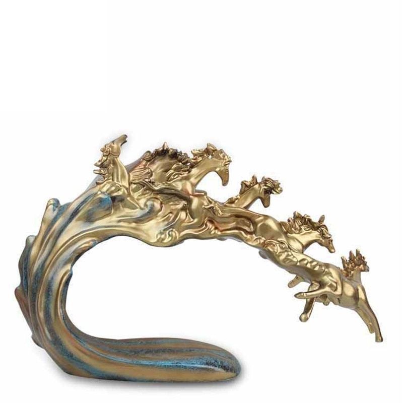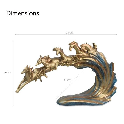 Cette sculpture fabriquée en résine naturelle donnera beaucoup d'originalité dans votre intérieur. Sa forme telle une vague apporte de l'énergie aux chevaux. Sa couleur or ajoute le côté luxueux au modèle. Vous pouvez la poser sur une table de salon ou dans votre chambre par exemple pour une déco d'intérieur moderne.