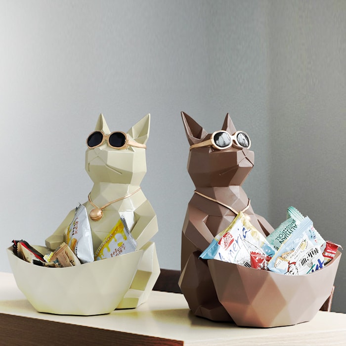 Laissez place à une touche de fun dans votre décoration d'intérieur grâce à cette superbe sculpture. Elle est fabriquée en résine naturelle et apportera du peps dans votre pièce. Elle représente un chien en forme d'origami, très tendance en ce moment. Ce modèle vous permet d'ajouter des petits objets comme vos clefs de maison ou des bonbons par exemple.