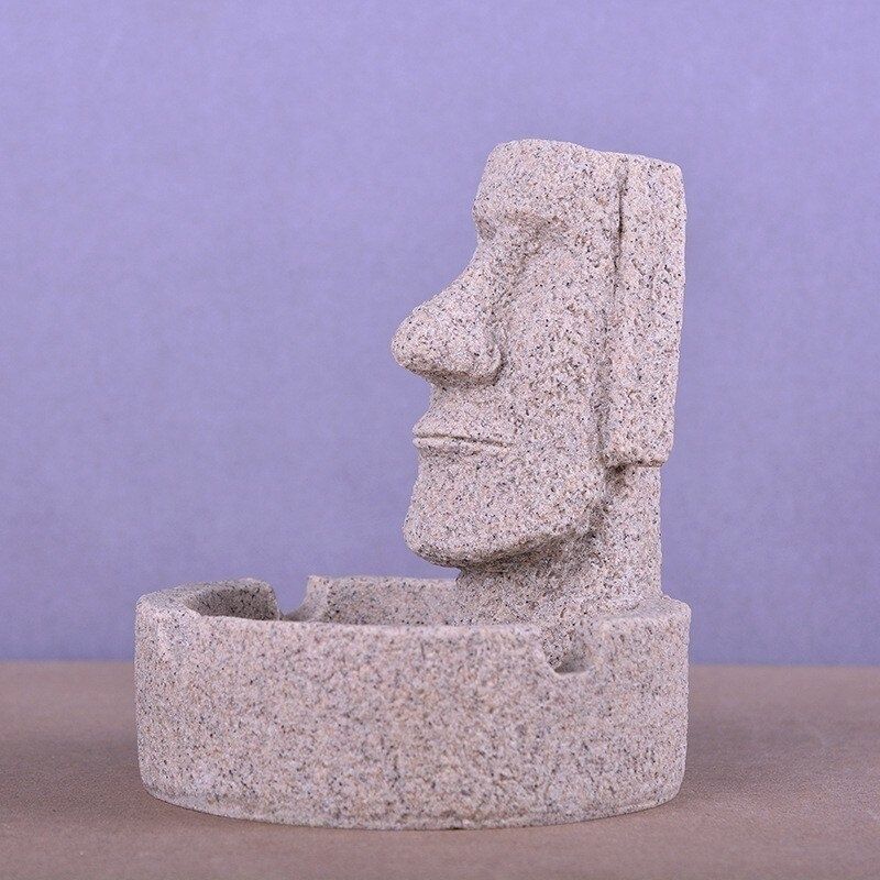 Décorez votre habitat avec cette superbe sculpture fabriquée en pierre de grès. Elle représente les très célèbres têtes Moaï situées au Chili sur l'Île de Pâques. Sa forme vous permet de l'utiliser en simple statue ou alors en tant que cendrier. Sa couleur claire se mariera avec toutes vos décorations. Elle sera parfaite posée sur le meuble de votre salon, dans votre entrée ou alors sur votre table de jardin.