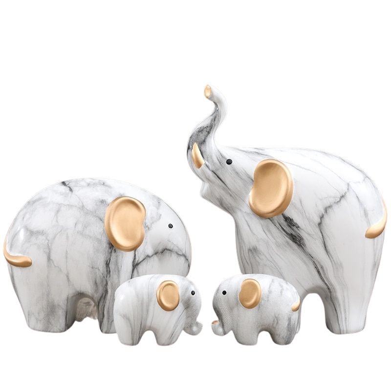 Égayez votre intérieur avec cette famille d’éléphants. Nous n’aimons pas séparer les familles, c’est pour cela que nous vous proposons ce lot de 4 sculptures familiales d’éléphants effet marbre. Selon le Feng Shui, la trompe d’un éléphant levée signifie qu’il vous portera bonheur.
