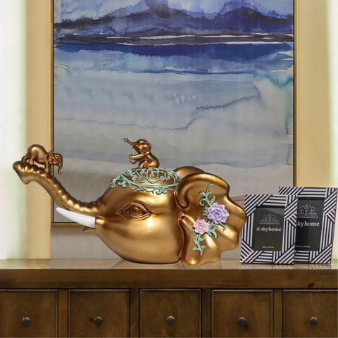 Selon la croyance Indienne, l’éléphant est un emblème ancestral symbolisant la sagesse et la puissance. La trompe vers le haut est un porte-bonheur. Posez cette sculpture créée en résine naturelle sur votre meuble de salon par exemple et laissez-la disperser les bonnes énergies dans votre maison. Sa couleur or rappelle que l’animal est un emblème précieux.