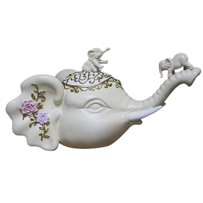 Posez cette somptueuse tête d’éléphant créée en résine naturelle sur votre meuble pour une déco d’intérieur réussie ! En Inde, l’éléphant est un véritable symbole de sagesse et de puissance. Sa couleur blanche est assimilée à la pureté et à la paix. La trompe vers le haut est synonyme de porte-bonheur pour laisser entrer les bonnes énergies dans votre maison.