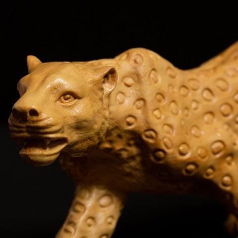 Une Statue Panthère Bois fabriquée artisanalement pour votre décoration d'intérieur.