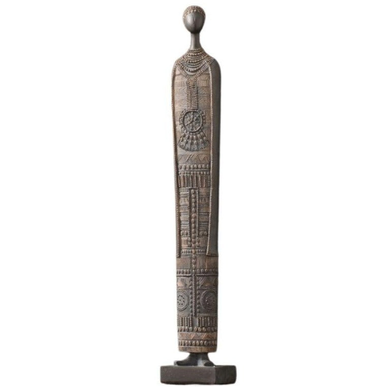 Donnez une autre dimension à votre décoration d'intérieur grâce à cette magnifique sculpture. Elle est fabriquée en résine naturelle et donnera une touche de charme à l'Africaine chez vous. Ce modèle représente une femme fine et grande au style très contemporaine. Une déco moderne et élégante, parfaite pour votre maison !