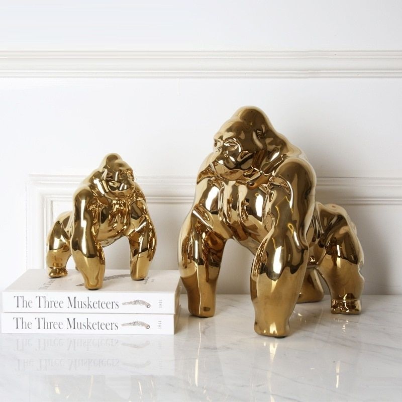 Cette magnifique sculpture est fabriquée en céramique et apportera un aspect très luxueux dans votre décoration d'intérieur. Sa forme représente un gorille debout et très musclé. Sa couleur or brillante donnera beaucoup de cachet dans votre pièce. Pour une décoration réussie, posez ce modèle sur un meuble dans votre entrée ou sur une table de salon par exemple.