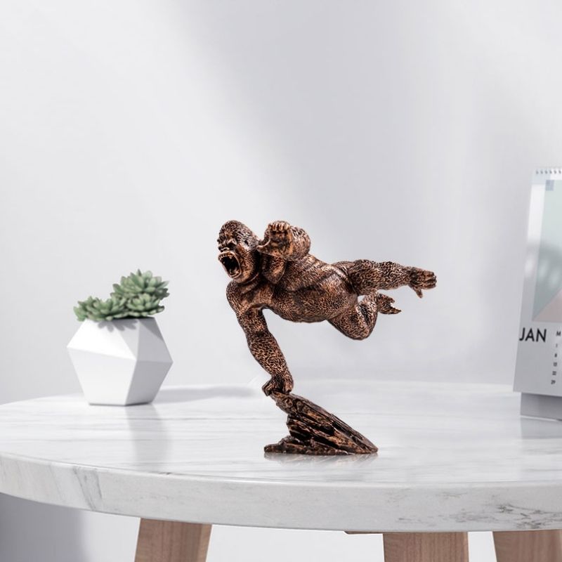 Cette très belle sculpture fabriquée en résine naturelle apportera beaucoup de puissance et de dynamisme dans votre décoration d'intérieur. Sa forme représente un gorille énervé en action. Sa couleur marron se mariera parfaitement dans votre pièce. Ce modèle sera idéal posé sur le meuble de votre entrée ou sur un bureau par exemple.