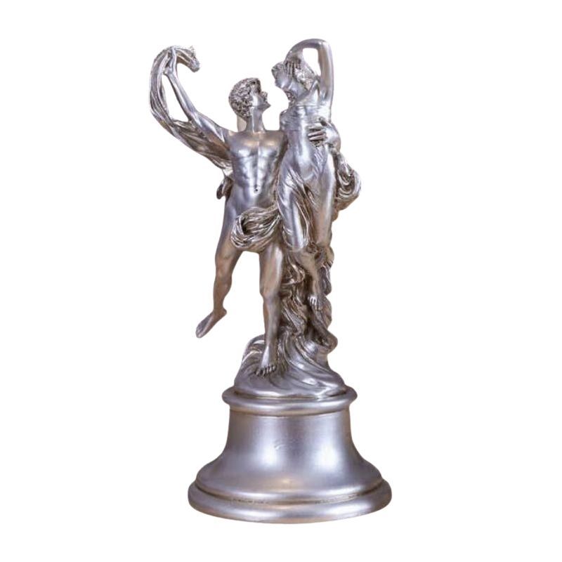 Magnifique sculpture fabriquée en résine naturelle pour accessoiriser votre décoration d'intérieur. Sa forme représente un couple d'amoureux qui dansent avec passion. Sa couleur argentée apportera beaucoup de charme dans votre intérieur. Ce modèle donnera beaucoup d'élégance dans votre décoration. Elle sera parfaite posée sur le meuble de votre salon ou dans votre bureau par exemple.