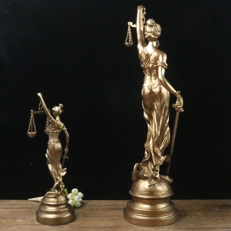 Magnifique sculpture pour accessoiriser votre décoration d'intérieur. Ce modèle représente la Déesse Grecque de la Justice. Sa forme est très élégante et raffinée. Sa couleur cuivre se mariera parfaitement avec votre intérieur et lui donnera beaucoup de charme. Elle sera parfaite posée sur votre bureau, dans votre salon ou dans votre entrée par exemple.