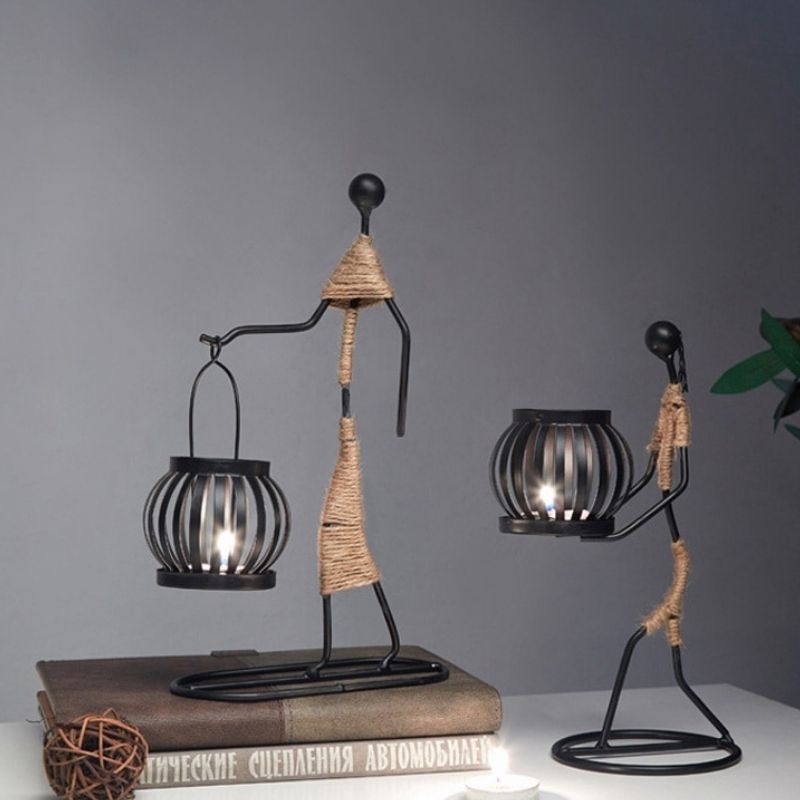 Nous vous proposons aujourd'hui une nouvelle collection de sculptures d'Afrique fabriquées en métal nordique. Un style minimalisme et élégant qui saura accessoiriser votre décoration d'intérieur. Ce modèle représente un homme en tenue traditionnelle et qui porte une lanterne. Elle vous permet d'ajouter une bougie pour propager de la lumière chez vous.