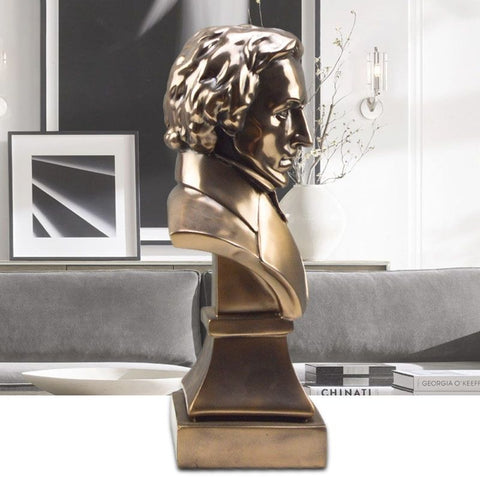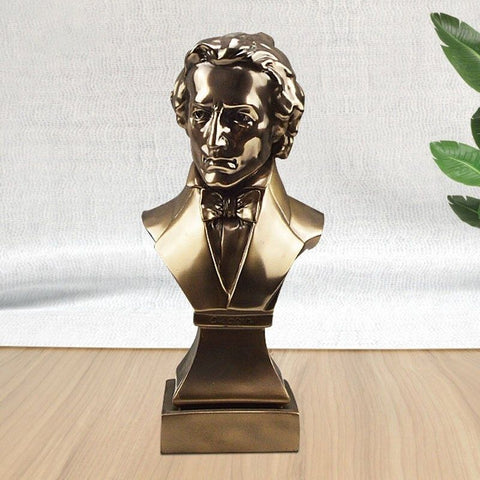Vous l'avez reconnu ? Ce virtuose du piano n'est autre que Monsieur Chopin, l'un des plus grands pianistes au monde. Nous avons décidé de vous proposer la magie de ce compositeur au service de votre décoration d'intérieur. Sa couleur bronze brillant apportera beaucoup d'éclat et de chic chez vous. Dans votre salon, à côté de votre piano ou sur votre bureau, cette sculpture trouvera forcément sa place.