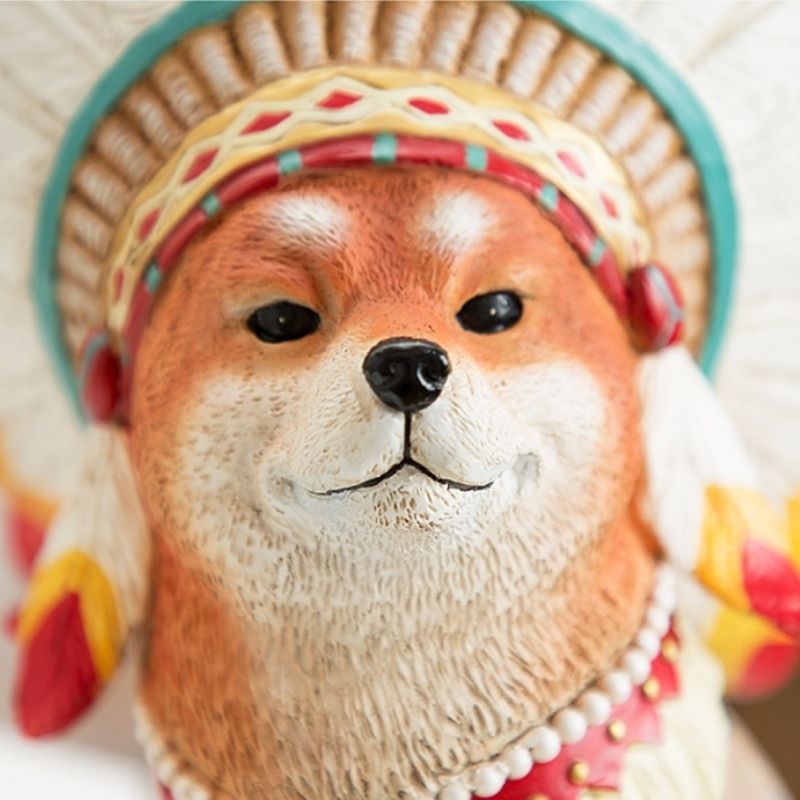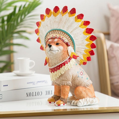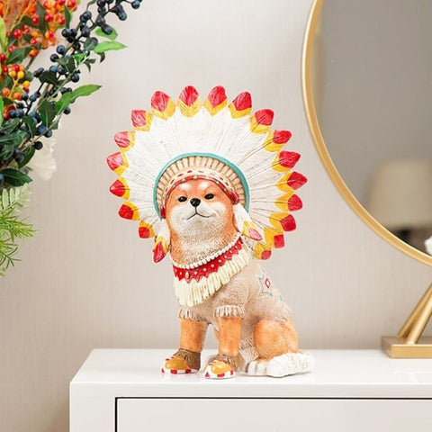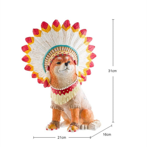 Donnez du peps dans votre décoration d'intérieur avec cette superbe sculpture fabriquée en résine naturelle. Elle représente un petit chien assis qui porte une étoffe indienne avec des plumes ainsi qu'une jolie tenue traditionnelle indienne. Ses couleurs chaudes et colorées seront parfaites dans une chambre d'enfant par exemple, sur un bureau ou un meuble dans votre salon.