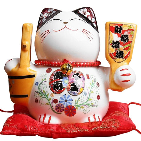 Magnifique modèle de Maneki-Neko fabriquée en porcelaine. Ses couleurs vives apporteront du dynamisme dans votre décoration d'intérieur. Maneki-Neko est un véritable symbole et porte-bonheur au Japon. Vous pouvez placer cette sculpture dans votre salon ou dans votre entrée par exemple pour bénéficier de toutes ses bonnes énergies !