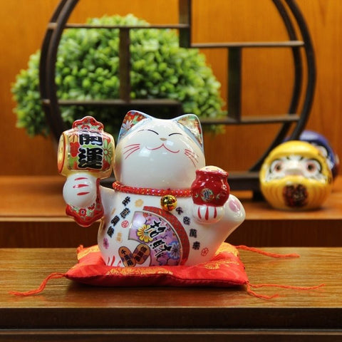 Maneki-Neko est un chat très célèbre au Japon car il porterait bonheur ! Placez cette sculpture dans votre salon, votre entrée ou bien dans votre chambre par exemple, et laissez se propager les ondes-positives de ce modèle. Il est fabriqué en porcelaine et ses couleurs vives donneront de l'énergie dans votre décoration d'intérieur.