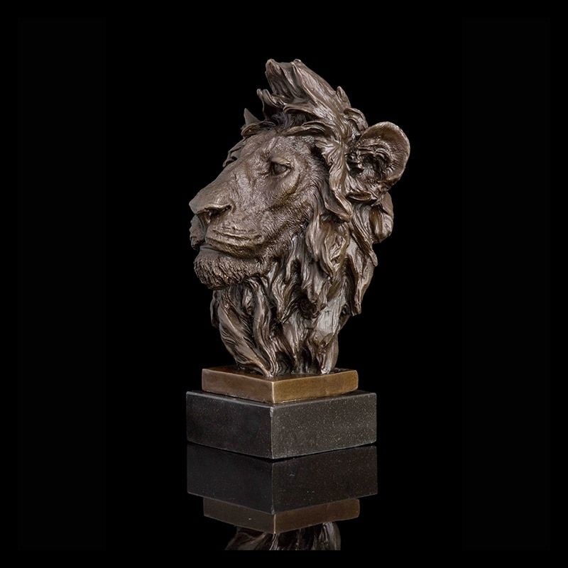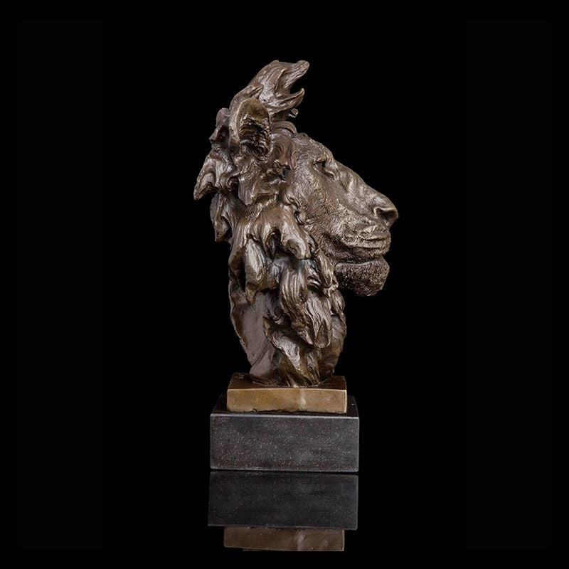 Cette magnifique sculpture saura donner beaucoup de prestance chez vous. Elle représente une tête de lion à la qualité exceptionnelle. Ce modèle est fabriqué en bronze véritable. Les détails de la tête de lion sont de très haute qualité et apporteront beaucoup de charme et de force dans votre décoration d'intérieur.