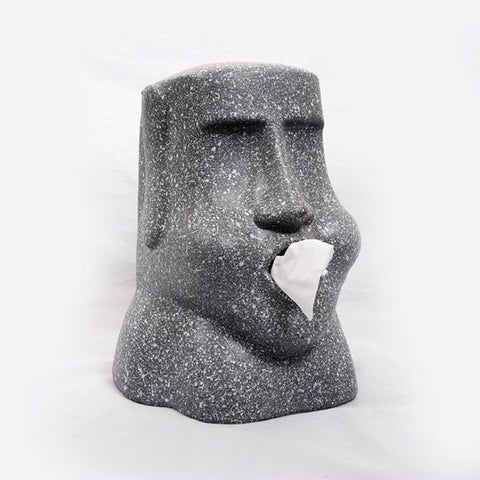 Pour dynamiser votre décoration d'intérieur, nous vous conseillons d'avoir cette sublime sculpture fabriquée en résine naturelle. Sa forme représente une tête Moaï, très célèbre dans le monde entier. Sa couleur grise se mariera parfaitement avec votre décoration. Sa forme vous permet de la laisser ainsi en statue ou alors de l'utiliser comme une distributeur de tissus. Elle sera parfaite posée sur un meuble de votre salon, dans votre entrée ou dans votre cuisine par exemple.