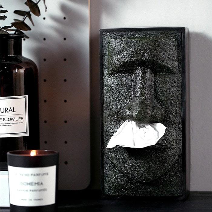 Sortez des sentiers battus et optez pour un univers décoratif fun avec cette Statue Tête de Moaï Enrhumée.