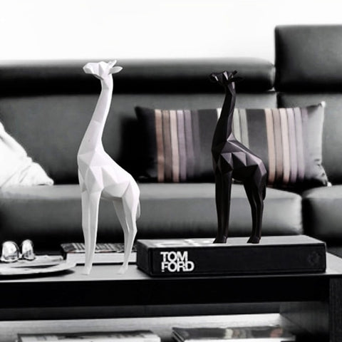 Cette sculpture de Girafe est un très bel objet de décoration d'intérieur. Un animal long, fin et élégant qui donnera beaucoup de charme dans votre habitat. Elle est en forme d'origami, très tendance et prisée en ce moment. De couleur blanche ou noire, ce modèle ira parfaitement dans votre salon ou dans votre entrée par exemple.