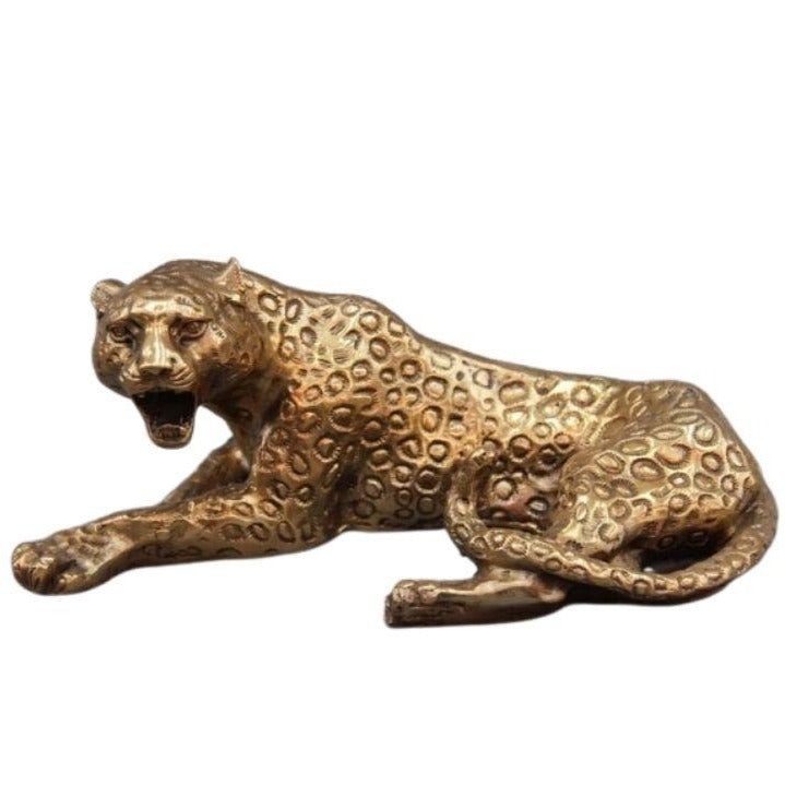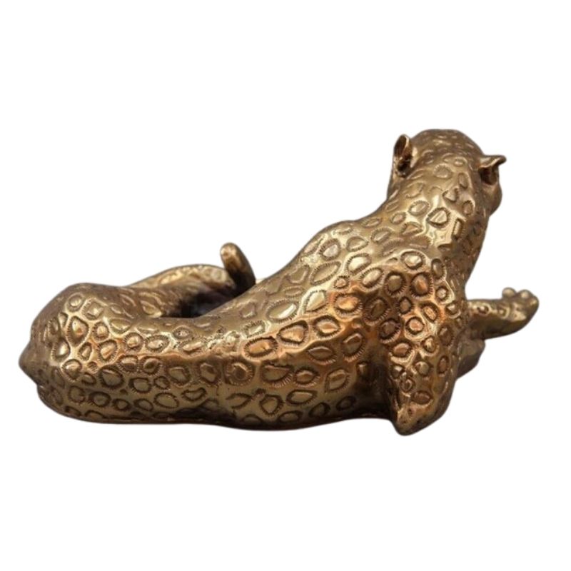 Magnifique panthère pour dynamiser votre décoration d'intérieur à merveille. Fabriquée en bronze véritable, cette sculpture est de très haute qualité. Elle représente un panthère assise avec la gueule ouverte pour ajouter beaucoup de puissance chez vous. Sa couleur dorée apportera tout de suite du chic dans une pièce de votre habitat.