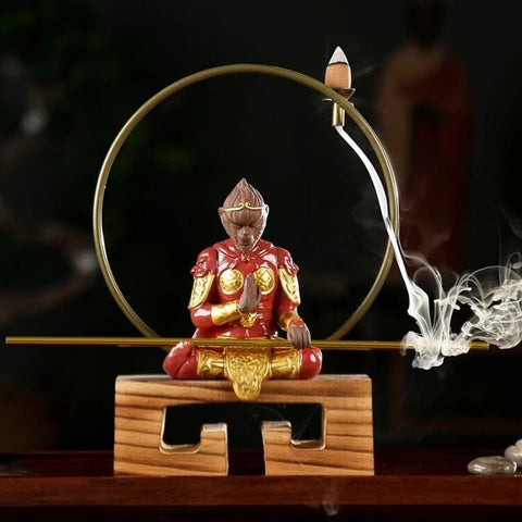 Cette magnifique sculpture est fabriquée en argile et donnera beaucoup de cachet dans votre décoration d'intérieur. Sa forme représente un singe samouraï en pleine méditation. Ce modèle sera idéal posé sur le meuble de votre entrée, un bureau ou même une table de salon par exemple. Certains modèles vous permettent d'y ajouter de l'encens pour propager de la bonne odeur dans votre habitat.