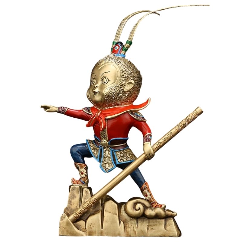 Cette superbe sculpture est fabriquée en cuivre et donnera beaucoup de cachet dans votre décoration d'intérieur. Sa forme représente un petit singe samouraï avec une tenue traditionnelle chinoise. Ses couleurs apporteront beaucoup de peps dans votre déco et l'or ajoutera un côté luxueux. Ce modèle sera idéal posé sur un meuble d'entrée ou sur votre table de salon par exemple.
