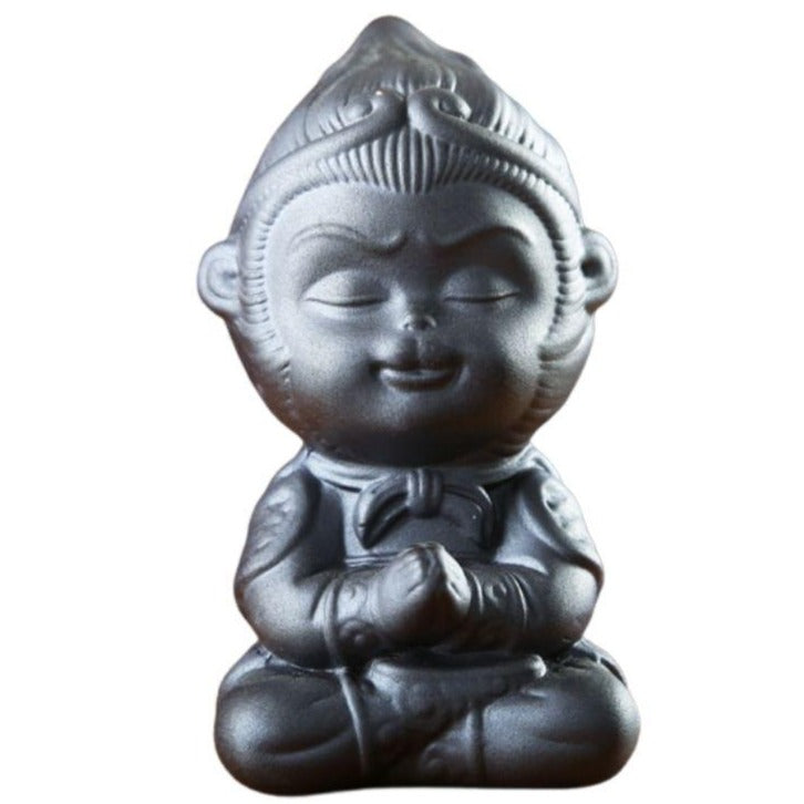 Vous ne pourrez pas résister devant cette petite sculpture fabriquée en céramique et en émail. Elle représente un singe assis en pleine méditation. Sa couleur noire apportera beaucoup de cachet dans votre décoration d'intérieur. Ce modèle très mignon ira parfaitement sur un meuble dans votre entrée ou sur une table de salon par exemple.