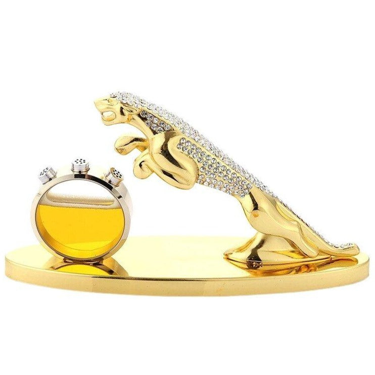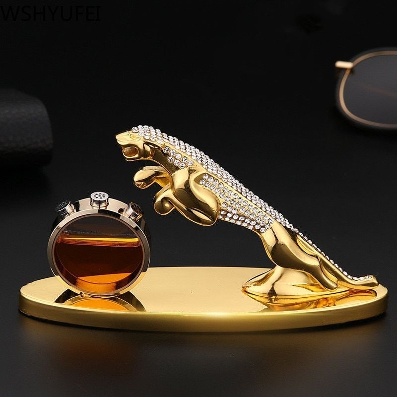 Cette sublime sculpture donnera un grand charme dans votre décoration d'intérieur. Elle représente une panthère avec les deux pattes de devant en l'air. Sa couleur dorée apporte au modèle un grand chic. Les strass sur le dos de l'animal ajouteront à votre déco un côté très luxueux. Elle vous permet d'ajouter un liquide à l'intérieur.