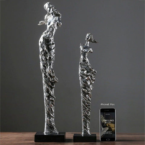 Cette superbe sculpture est fabriquée en résine naturelle et apportera beaucoup de charme dans votre décoration d'intérieur. Sa forme contemporaine est ultra-moderne. Sa couleur argentée réhaussera votre intérieur et apportera du peps dans votre déco. Elle sera parfaite posée sur le meuble de votre salon ou dans votre entrée par exemple.