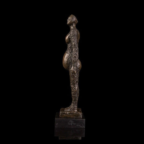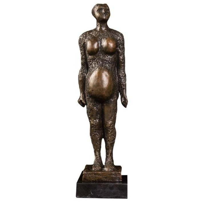 Nous avons pour vous cette somptueuse sculpture fabriquée en bronze véritable posée sur un socle en marbre. Elle représente une femme enceinte debout. Sa forme est très contemporaine et élégante et saura dominer votre décoration d'intérieur. Les détails de ce modèle sont magnifiques. Elle sera parfaite sur un meuble de salon ou d'entrée par exemple.