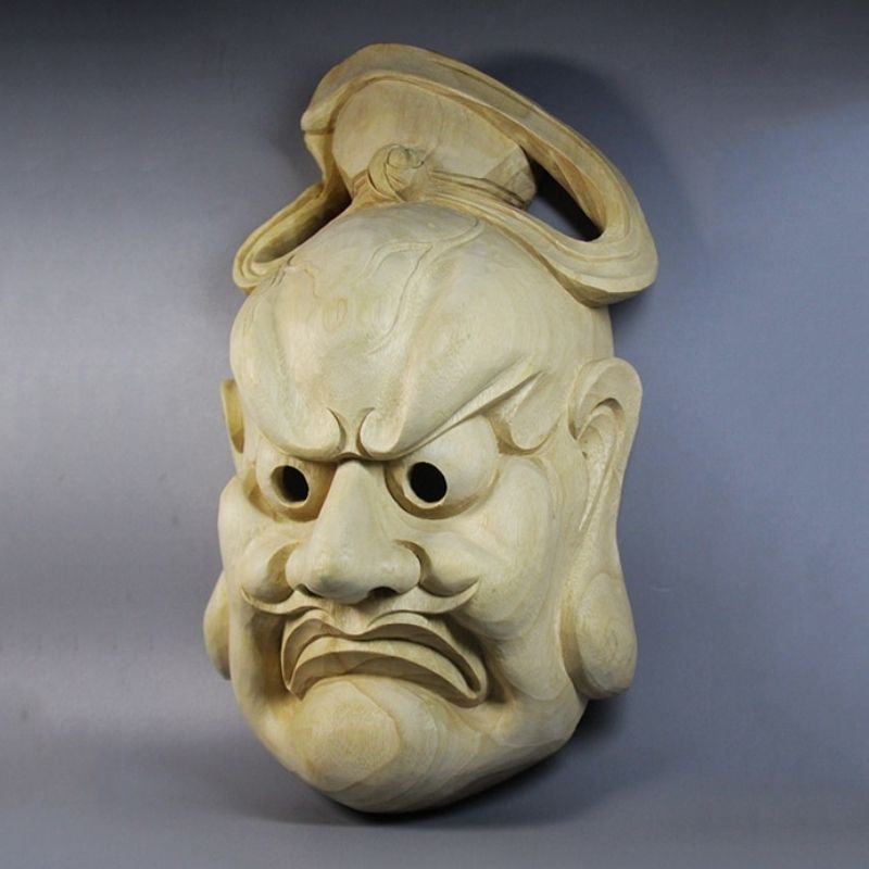 Décorez votre intérieur de cette magnifique sculpture fabriquée en bois véritable. Sa forme est très représentative des masques utilisés dans le théâtre Japonais. Le théâtre tient une place importante dans la culture japonaise. Ajoutez une touche de l'Empire du Soleil Levant chez vous. Elle sera parfaite accrochée dans votre bureau, dans votre salon ou dans votre entrée par exemple.