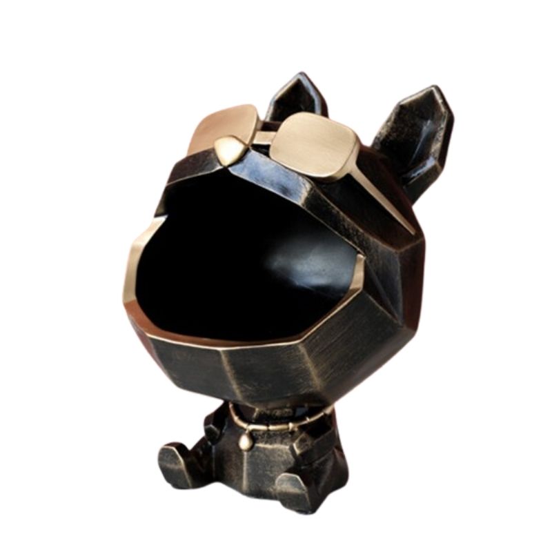 Accessoirisez votre décoration d'intérieur de cette très belle sculpture fabriquée en résine naturelle. Sa forme représente un Bouledogue très drôle avec ses lunettes de soleil. Son aspect en origami est très tendance en ce moment et sa couleur noire ajoutera du cachet dans votre déco. Ce modèle vous permet de mettre de petits objets dans la gueule de l'animal pour un côté très pratique !