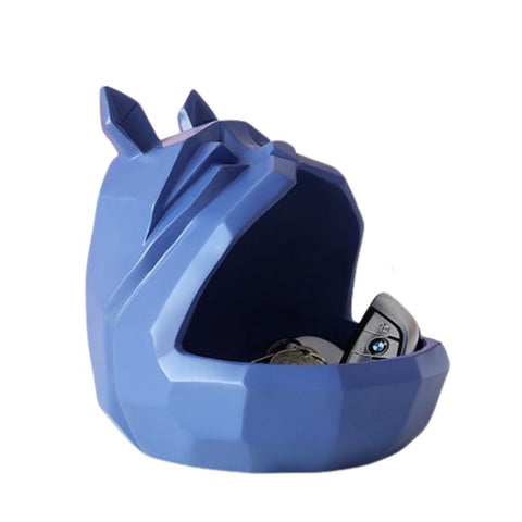 Laissez-vous tenter par cette très belle sculpture fabriquée en résine naturelle. Sa forme en origami est très tendance en ce moment et représente la tête d'un Bouledogue. La gueule de l'animal est ouverte, vous pouvez donc y ajouter de petits objets comme vos clefs ou des bijoux par exemple. Sa couleur bleue réhaussera votre décoration d'intérieur à la perfection !