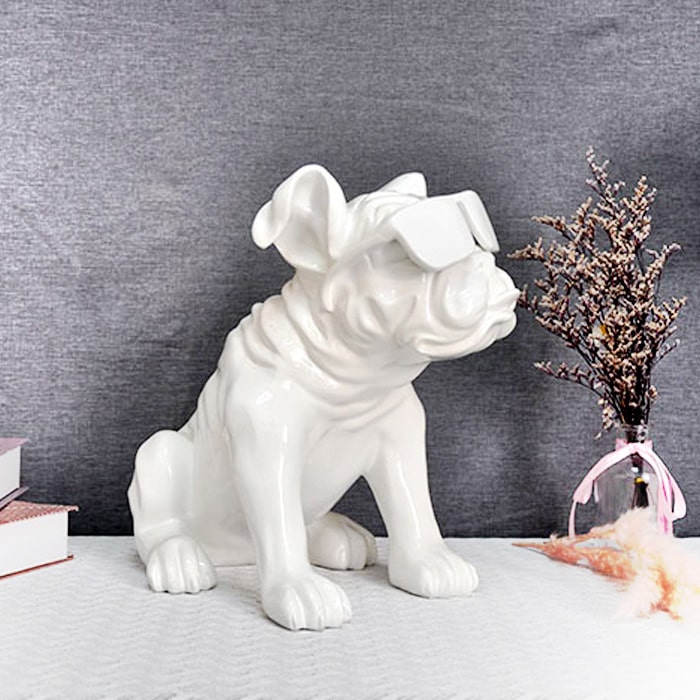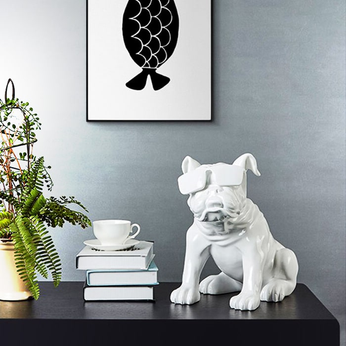 Cette sculpture de chien est l'objet décoratif parfait si vous voulez apporter de la modernité à votre décoration d'intérieur. Le bouledogue porte des lunettes de soleil pour un côté très fantaisiste et fun. De couleur plus neutre, ou plus vive, vous trouverez forcément votre bonheur avec ces modèles. Vous pouvez la poser dans votre salon ou dans votre entrée pour une déco originale.