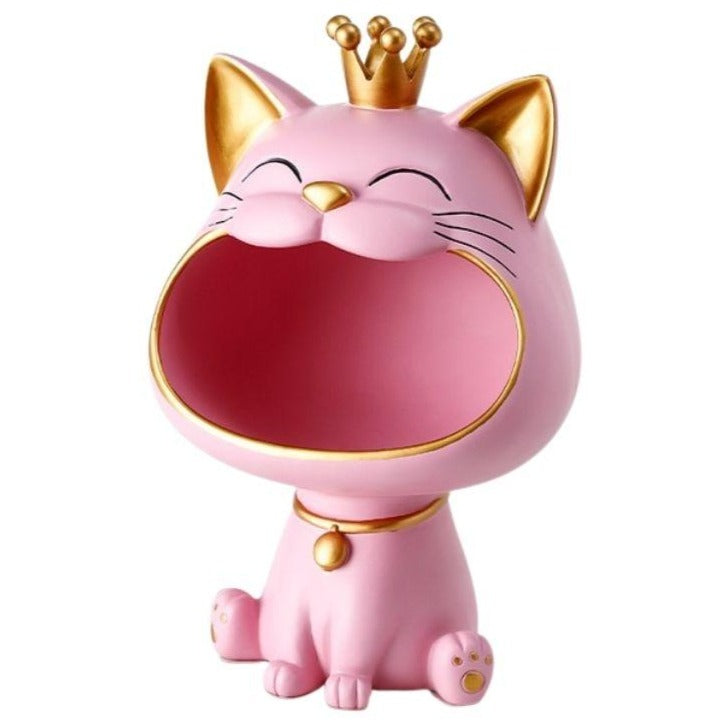 Ce modèle est fabriqué en résine naturelle et donnera beaucoup de charme dans votre décoration d'intérieur. Elle représente un chat avec un air joyeux assis. Sa forme avec sa grande gueule va vous permettre d'y ajouter de petits objets comme vos clefs de voiture ou des bonbons par exemple. La couleur rose ajoutera du peps dans votre pièce. Posez ce modèle sur un meuble d'entrée ou dans votre cuisine par exemple.