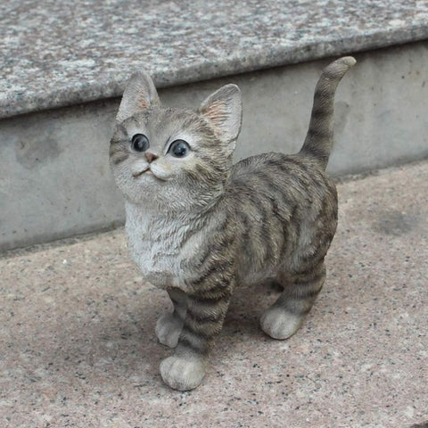 Cette magnifique sculpture est fabriquée en résine naturelle et donnera beaucoup de tendresse dans votre décoration. Vous pouvez la poser aussi bien dans votre intérieur que dans votre extérieur. Elle représente un petit chaton gris la tête en l'air pour une bonne dose de mignonnerie. Ce modèle ajoutera beaucoup de douceur dans votre habitat.