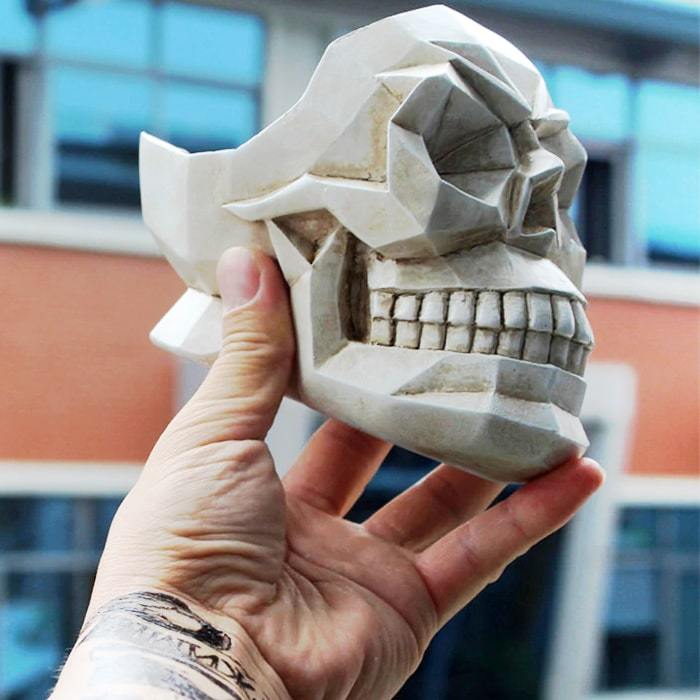 Pour une décoration d'intérieur originale, nous avons exactement ce qu'il vous faut ! Cette superbe sculpture est fabriquée en résine naturelle et représente une tête de mort. Elle est en forme d'origami, qui est un style très tendance et en prisé en ce moment. De couleur neutre ou plus fantaisiste, optez pour l'originalité dans votre déco grâce à ce modèle. Le petit plus ? Vous pouvez l'ouvrir et y ajouter de petits objets ou poser votre téléphone par exemple.