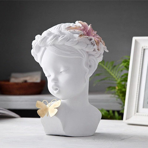 Une Statue moderne aux détails fins et soignés qui apportera de la grâce et de la féminité à votre déco d'intérieur. De couleur noire ou blanche, ce modèle se mariera parfaitement au sein de votre habitat. Elle représente la tête d'une petite fille avec une fleur dans les cheveux, qui ajoutera beaucoup d'élégance au modèle.